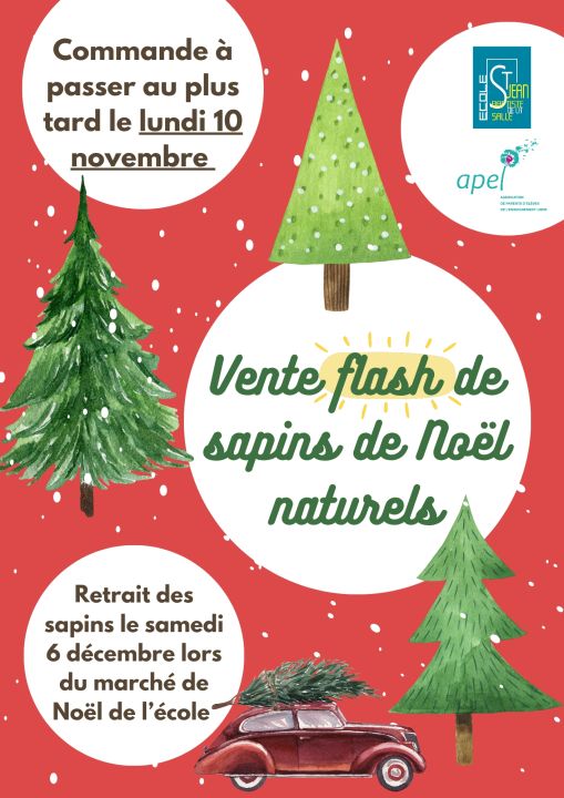 L'APEL organise une vente flash de sapins de Noël 🌲 pour financer les projets de l'école.